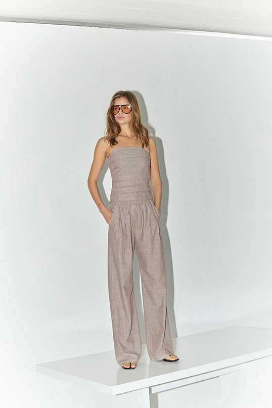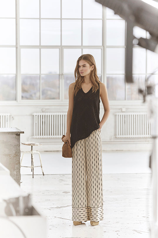 The collection ranges from tailored pants with more defined lines to softer, more relaxed silhouettes. Tailored styles introduce a more structured look, while relaxed fits create a sense of ease without losing their shape.