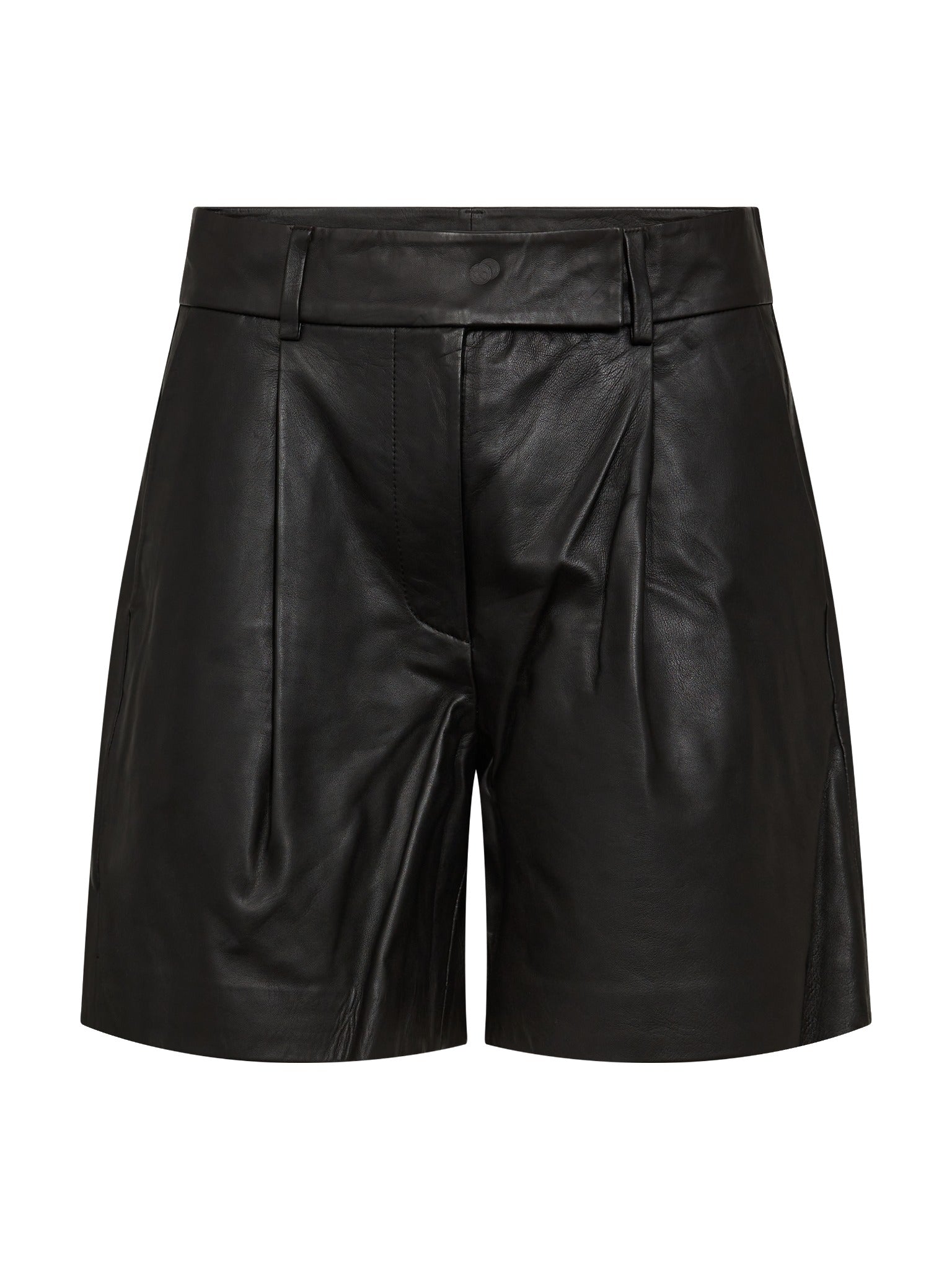 PhoebeCC Leather Pleat Shorts - Black