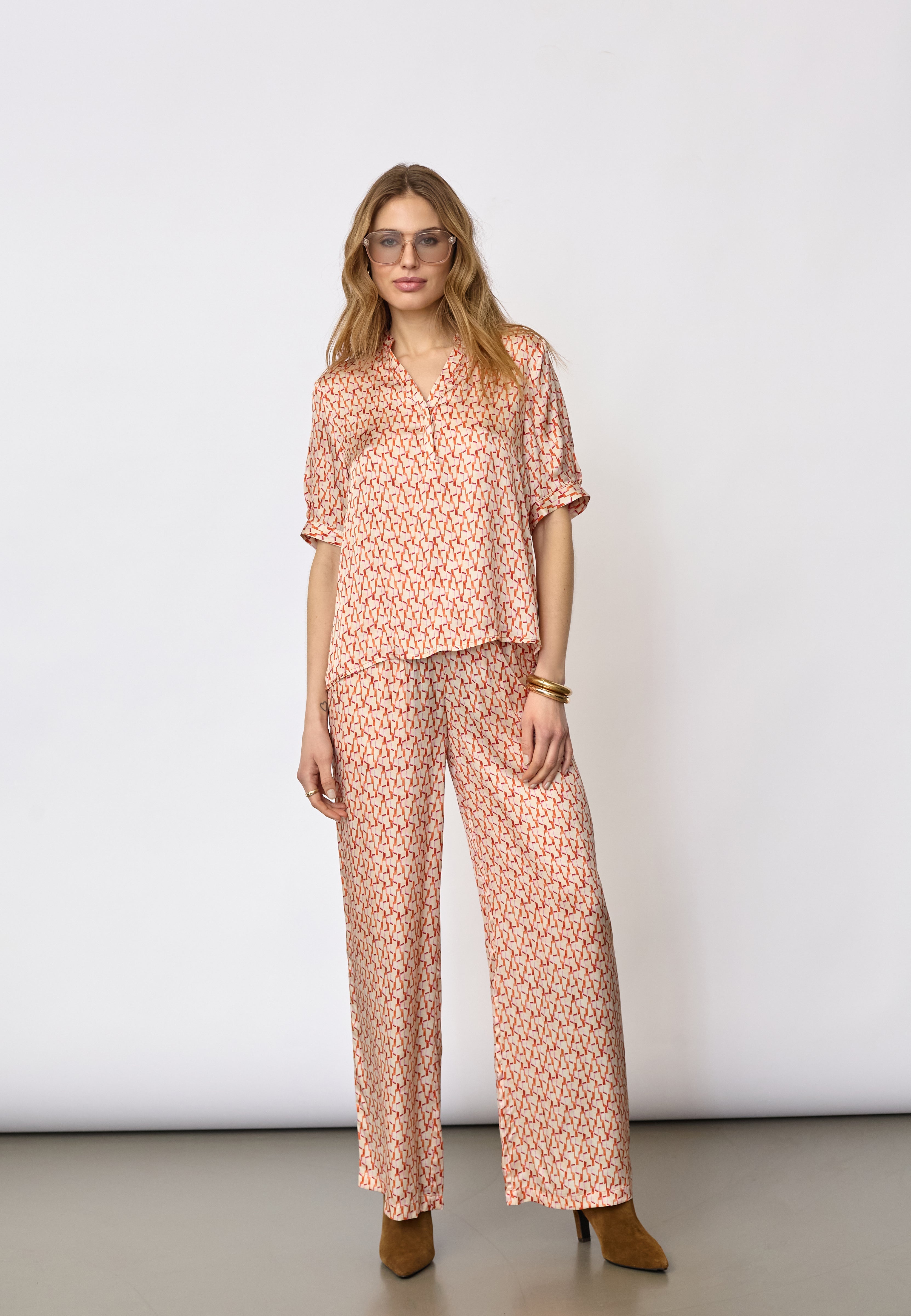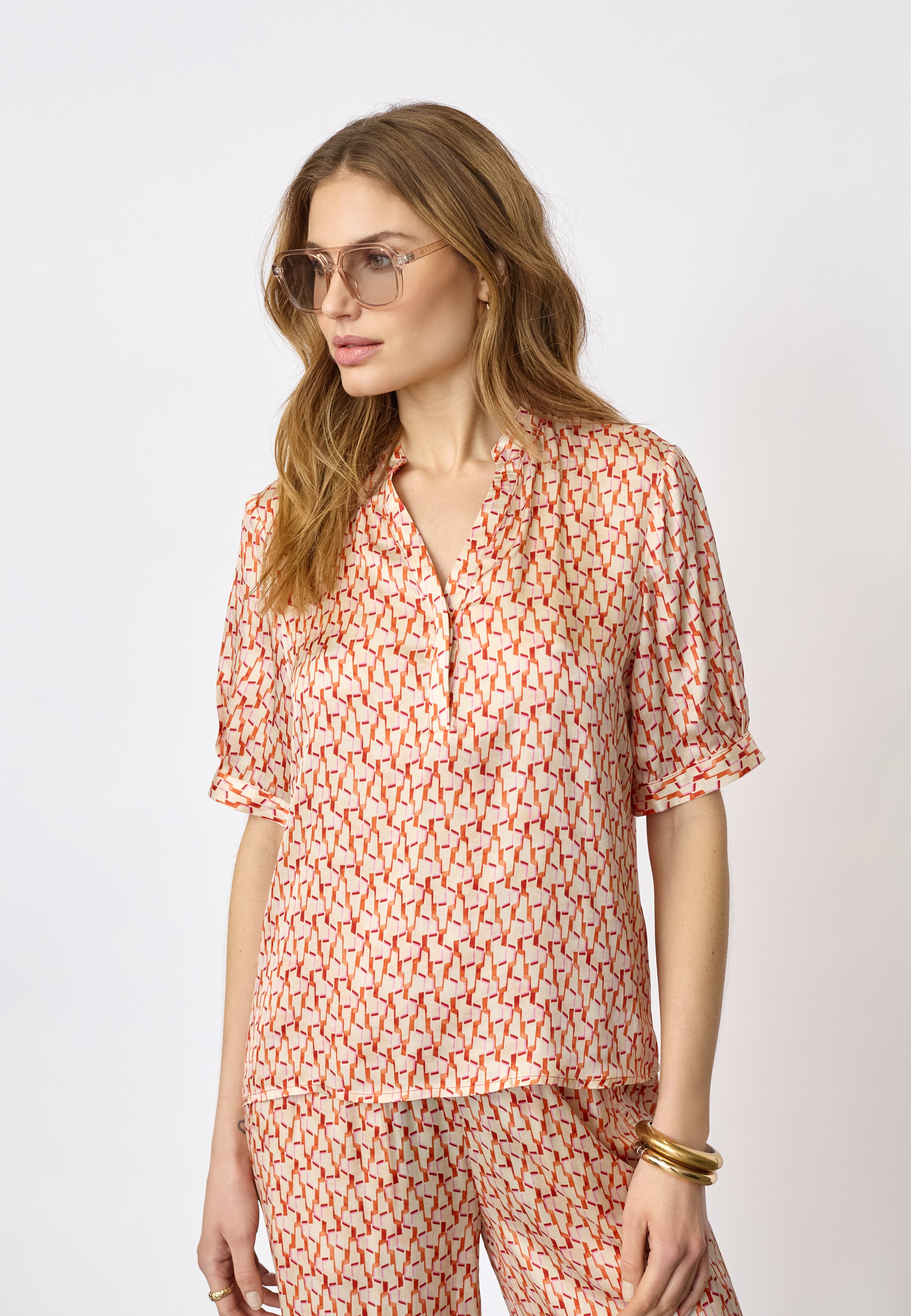 CarmineCC SS V-Blouse - Flame