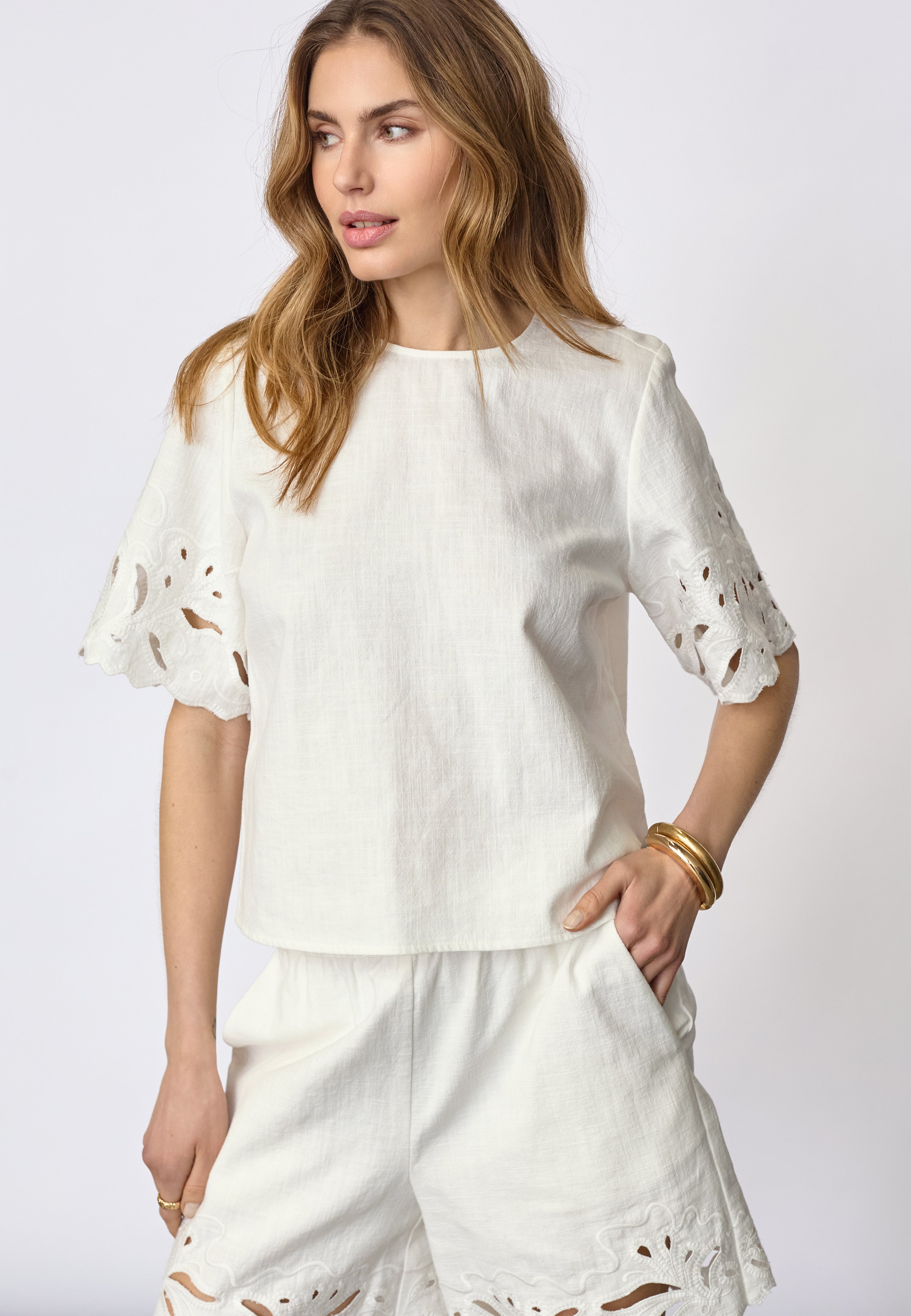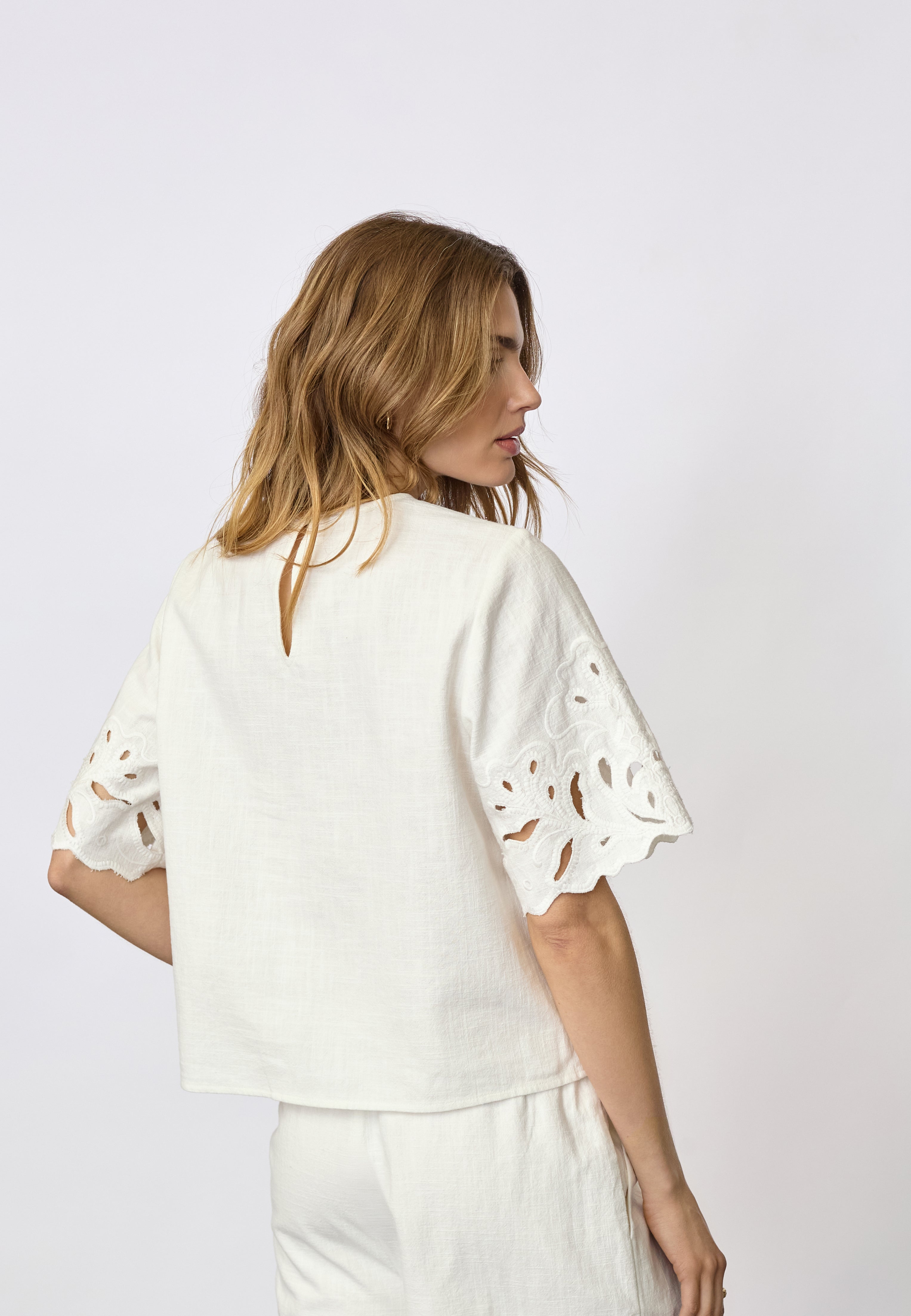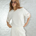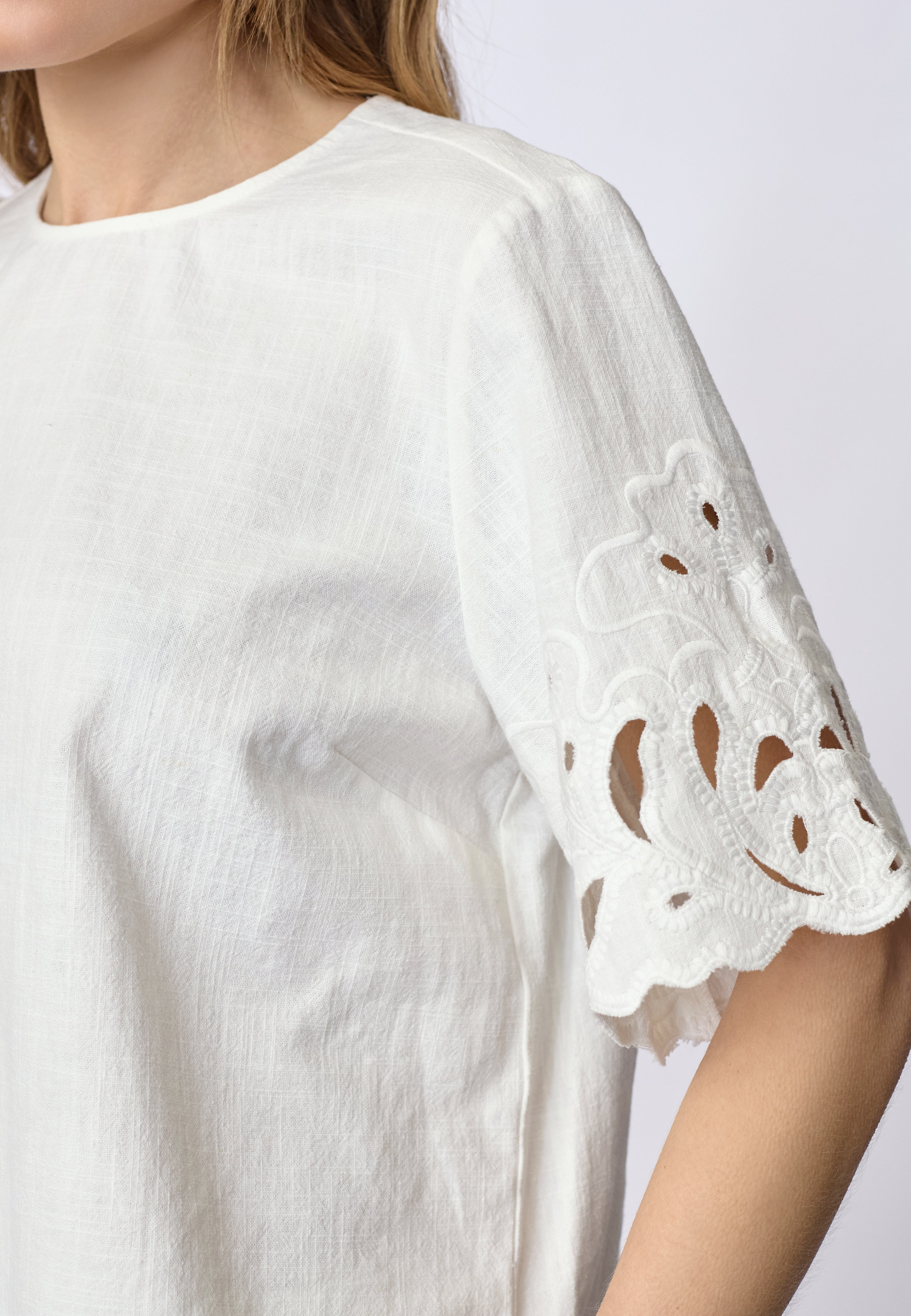 LitaCC Linen Emb SS Blouse - White