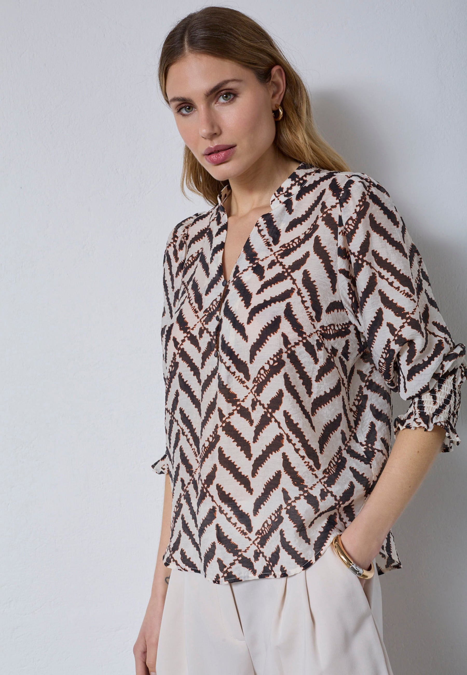 MemphisCC SS V-Blouse - Off white